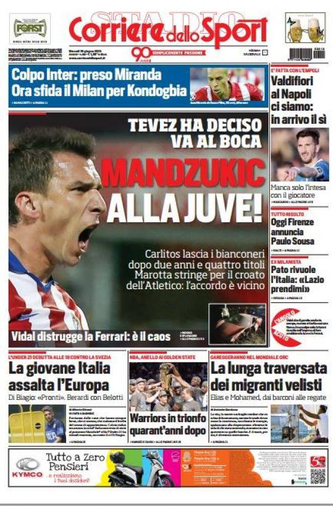 Corriere dello Sport: prima pagina del 18 giugno 18/06/2015 - 08:08 di Matteo B. Corriere dello Sport