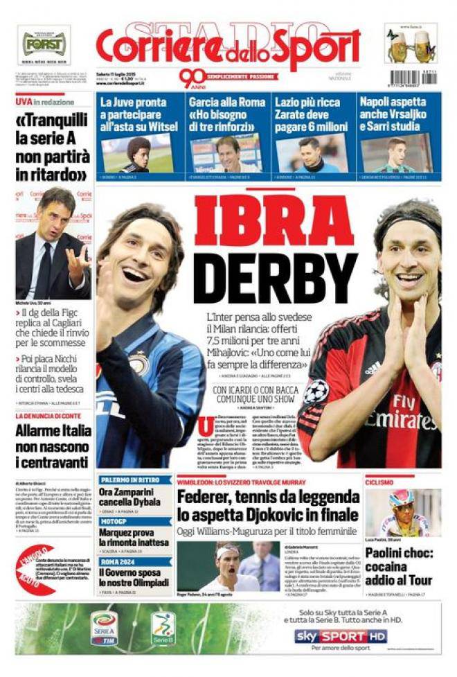 Corriere dello Sport, la prima pagina dell’11 luglio