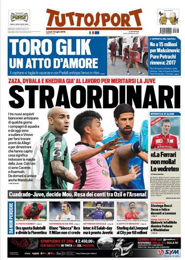 Tuttosport, la prima pagina del 13 luglio