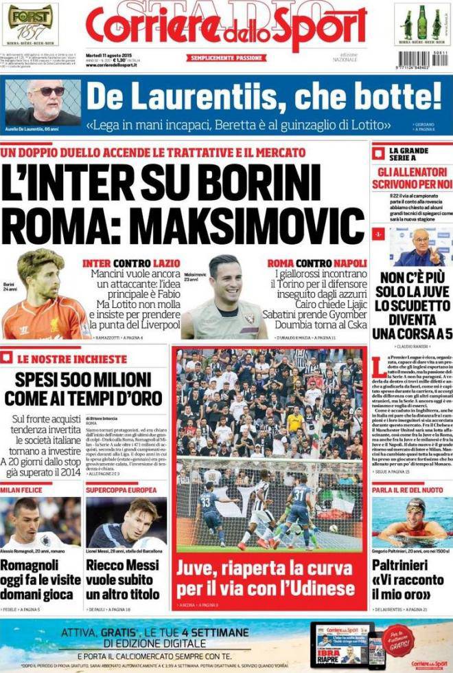 Corriere dello Sport, la prima pagina dell’11 agosto