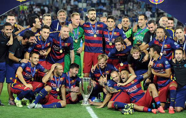 Una vittoria scoppiettante per 5-4 nella notte di Tbilisi ha consegnato al Barcellona il quarto trofeo della sua straordinaria annata. Messi e compagni hanno battuto il Siviglia nella finalissima di Supercoppa Europea, al termine di un incontro pazzesco finito ai tempi supplementari. Due reti del fenomeno argentino più quelle di Rafinha, Suarez e Pedro hanno deciso il match contro l’ottima formazione andalusa di Unai Emery, che aveva rimontato lo svantaggio con le reti di Banega, Reyes, Gameiro e Konoplyanka.