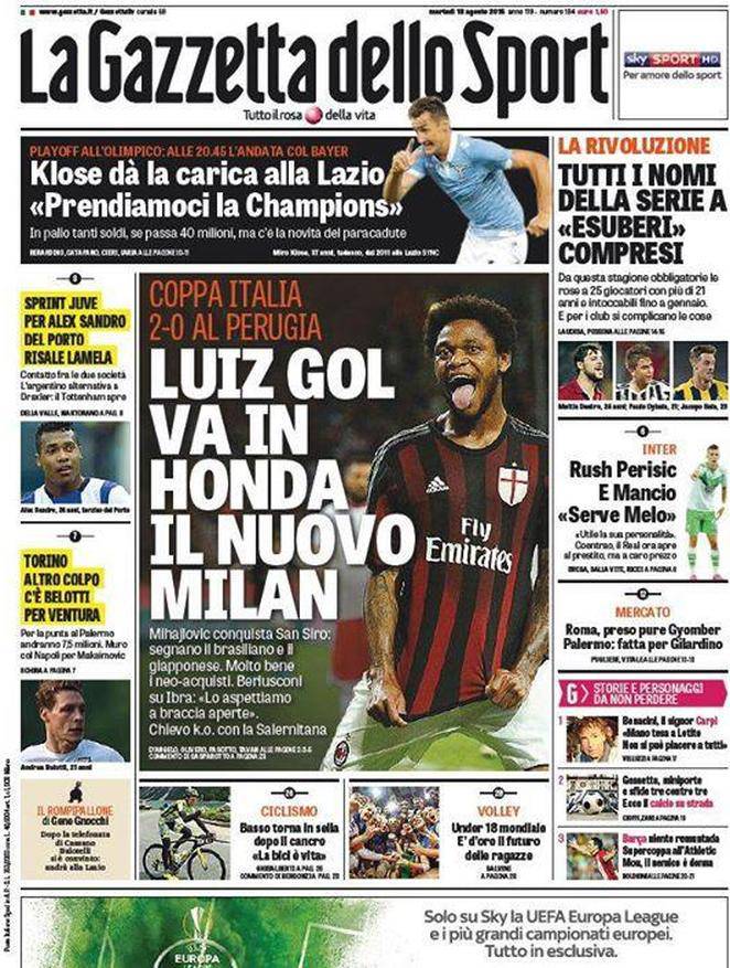 Gazzetta dello Sport, la prima pagina del 18 agosto