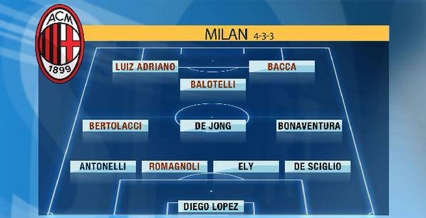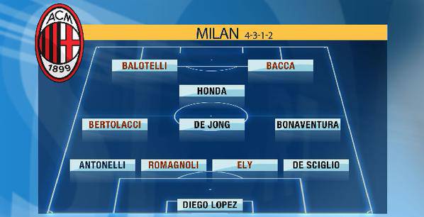 Secondo quanto riporta Sportmediaset nel 4-3-1-2 Balotelli potrebbe giocare sia come attaccante in tandem con Carlos Bacca o con un altro compagno, oppure c’è l’ipotesi di occupare la posizione di trequartista. Sicuramente la seconda viene dettata dal fatto che a Mario piace molto agire fuori dall’area, anche se il suo per caratteristiche non è profilo ideale del numero 10 che agisce alle spalle di due attaccanti.