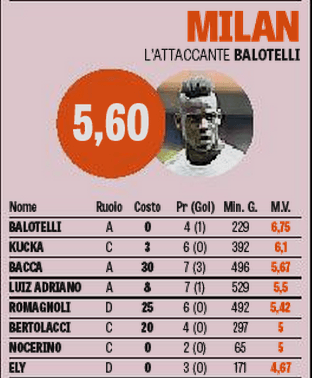 Ma a sorpresa tra i migliori colpi spunta Mario Balotelli, che alla casella dei denari spesi dal Milan per ingaggiarlo vede spuntare uno zero tondo tondo. Super Mario è arrivato in prestito secco, senza far spendere un euro al club rossonero, ma per qualità e continuità di prestazione si è guadagnato il terzo posto nella lista dei colpi intelligente, alle spalle dei suddetti neo acquisti della Fiorentina. Il paradosso è letale: più il Milan spende, più rischia di sbagliare, mentre con i colpi low-cost quasi si va sul sicuro.