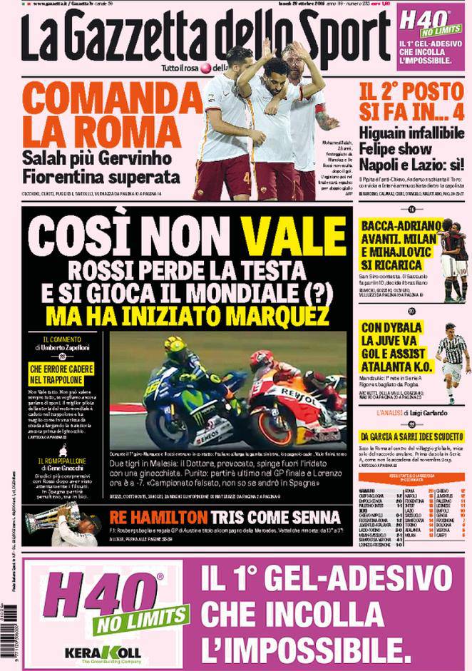 Gazzetta dello Sport, le prime pagine del 26 ottobre