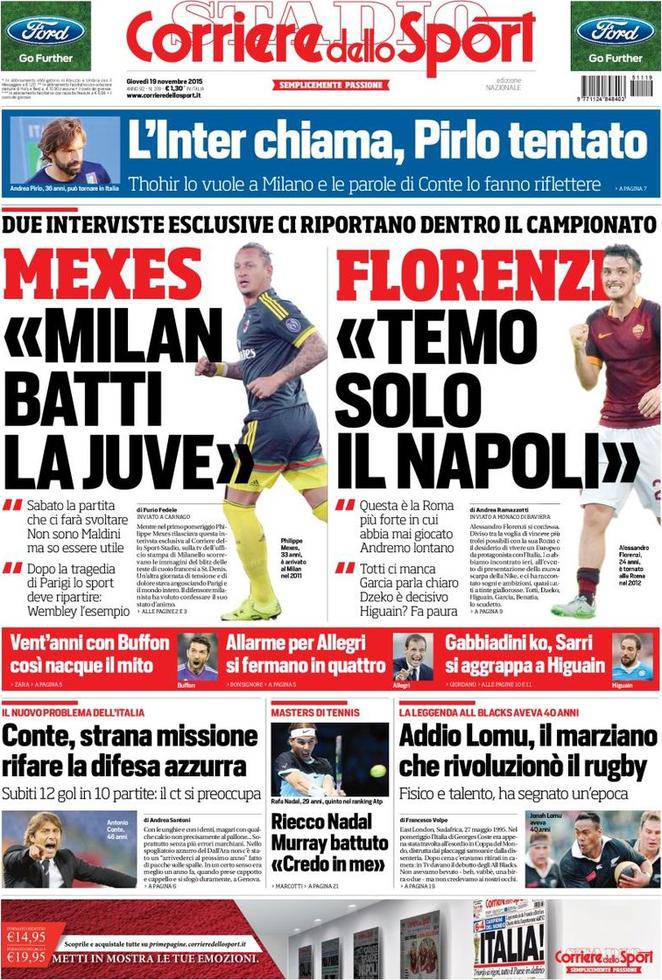 Corriere dello Sport: prima pagina del 19 novembre