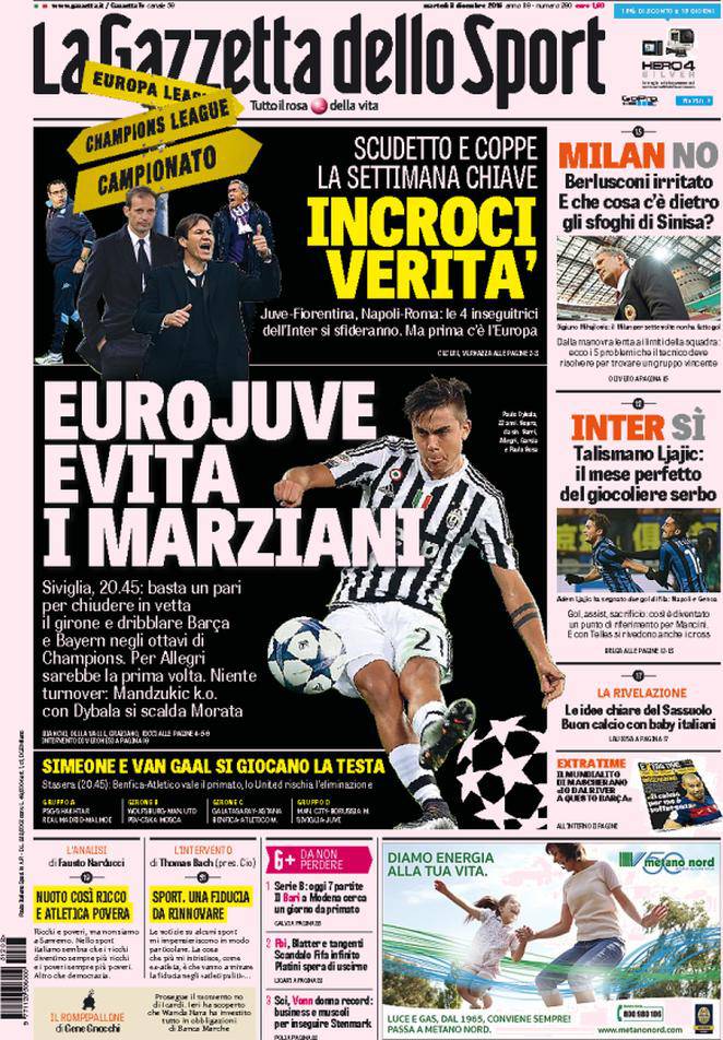 Gazzetta dello Sport: prima pagina dell’8 dicembre 08/12/2015 - 08:14 di Matteo B. La Gazzetta dello Sport