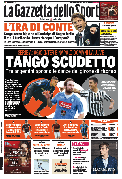 Gazzetta dello Sport, la prima pagina del 16 gennaio 2016