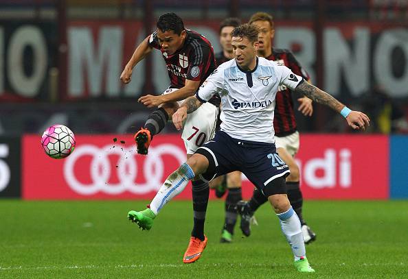 Si è da poco concluso il primo tempo della sfida di San Siro tra Milan e Lazio. Punteggio parziale sull’1-1. Biancocelesti in vantaggio con il gol di testa di Marco Parolo. i rossoneri hanno risposto dopo appena 6 minuti con il super gol d’esterno destro di Carlos Bacca. La squadra di Mihajlovic poteva chiudere la prima frazione in vantaggio se la punizione dal limite di Giacomo Bonaventura non si fosse schiantata sulla traversa.