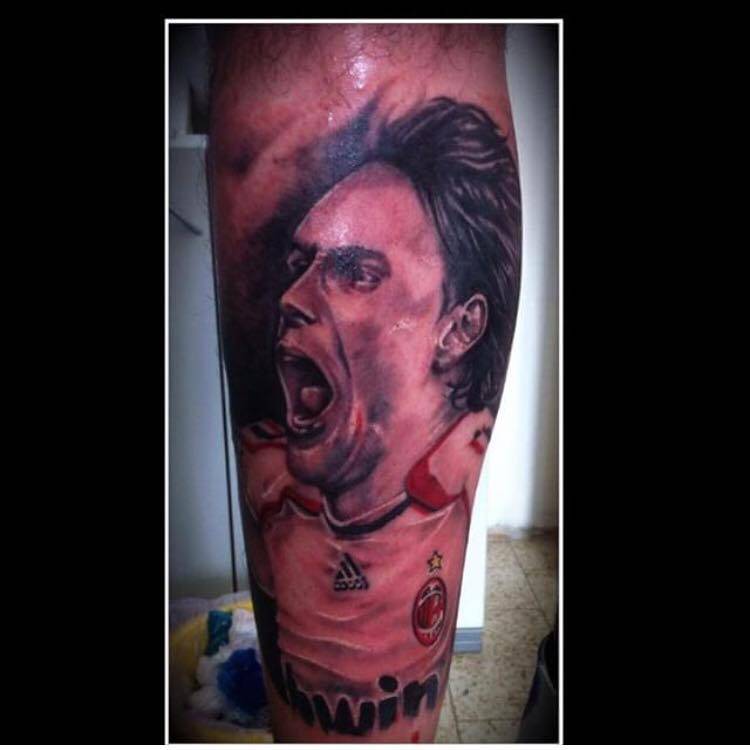 Un suo grande tifosi ha voluto celebrare le gesta di Inzaghi, tatuandosi proprio l’ex numero 9 rossonero sulla gamba. Immortalato l’urlo che ha contraddistinto sempre il bomber ogni volta che segnava una rete. Che fosse il quarto gol di una partita già ampiamente vinta o il gol decisivo in finale di Champions contro il Liverpool ad Atene nel 2007, l’esultanza non cambiava. Di seguito la foto del tatuaggio che Daniele Beltrami, 20enne della provincia di Bergamo, a distanza di 9 anni ha deciso di immortalare sul suo corpo: