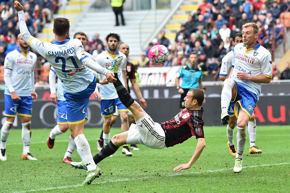 Archiviata la 36.a giornata di Serie A che vedeva di fronte a San Siro Milan e Frosinone. Succede di tutto a San Siro, con gli ospiti in vantaggio per 0-2 al termine del primo tempo, nonostante i padroni di casa fossero andati vicinissimi al pareggio in numerose occasioni. Nella ripresa sbaglia un calcio di rigore Balotelli, ma pochi minuti dopo arriva il gol di Carlos Bacca. 1-2 che dura poco, con Dionisi che approfitta dell’errore di Alex e Montolivo e porta il punteggio sul momentaneo 1-3. Fuori Abate, dentro Luca Antonelli: pochi minuti dopo è sua la rovesciata che batte Bardi, 2-3. Negli ultimi minuti di match arriva anche il pareggio: Jeremy Menez realizza il calcio di rigore. A tempo praticamente scaduto, Mario Balotelli colpisce in pieno la traversa. Finisce 3-3 una partita surreale che porta i rossoneri al settimo posto vista la vittoria del Sassuolo sull’Hellas Verona.