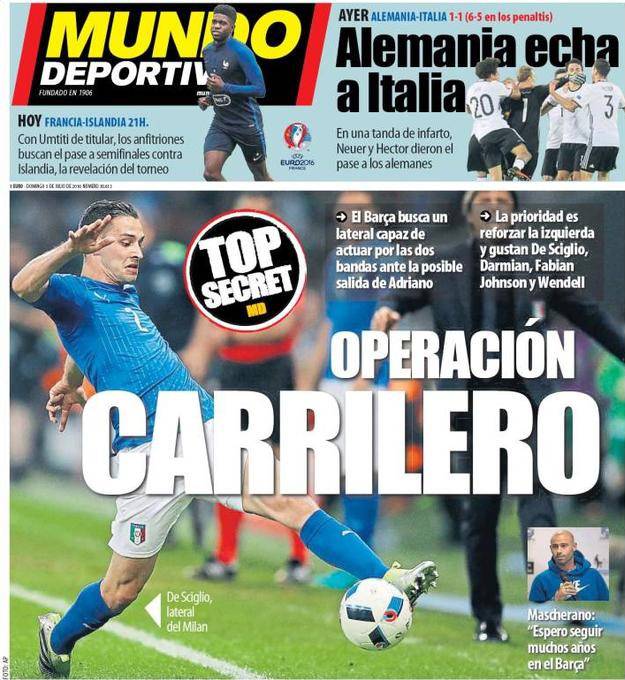 Tornando a De Sciglio, a riferire di questo interesse sono i colleghi spagnoli del Mundo Deportivo.