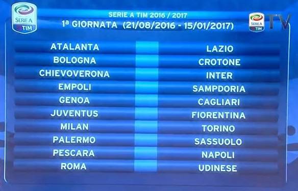 Saranno tre i turni infrasettimanali: 21 settembre, 26 ottobre e 22 dicembre. Le soste per la nazionale di Giampiero Ventura saranno invece quattro: il 4 settembre, il 9 ottobre, il 13 novembre e il 26 marzo 2017.