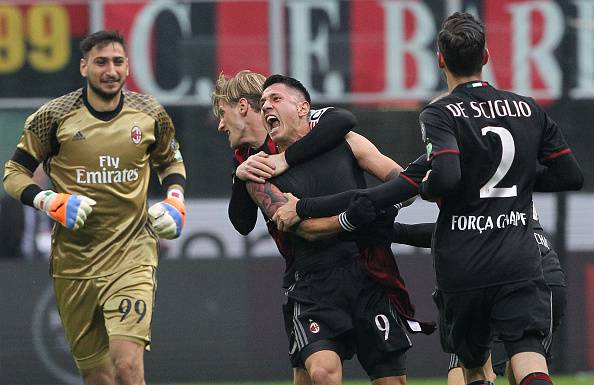Il Milan strappa tre punti al Crotone e consolida il secondo posto. Una vittoria sofferta per i rossoneri che sono andati sotto di un gol con Falcinelli, poi il pareggio firmato da Mario Pasalic di testa a pochi minuti dalla fine del primo tempo. Nella ripresa rigore sbagliato da M’Baye Niang: grande parata di Cordaz. Allo scadere del tempo regolamentare, arriva la sentenza Gianluca Lapadula: si gira in area e segna con il destro, boato di San Siro e vittoria fondamentale per la squadra di Vincenzo Montella.