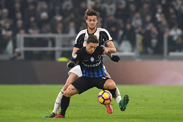 Daniele Rugani trattiene ‘Papu’ Gomez (©getty images)