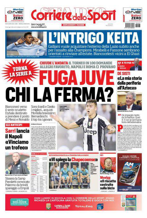 Corriere dello Sport, prima pagina del 7 gennaio 2017