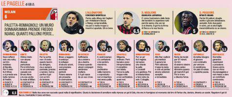 Bene la difesa del Milan: 6.5 assegnato a Paletta (una certezza ormai), Romagnoli e De Sciglio, bravo su entrambe le fasce di competenza. Tra i peggiori invece il solito M’Baye Niang, ancora impreciso e poco concreto all’interno della manovra rossonera. Non sufficiente Giacomo Bonaventura, bocciato con un 5.5 sorprendente, complice una ripresa troppo caotica che non ha aiutato la manovra rossonera.