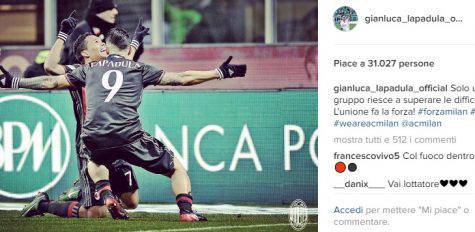 Nonostante la lotta per il posto da titolare, fra i due c’è un ottimo rapporto, come testimonia l’abbraccio dopo il gol. Lapadula, poi, tramite il suo profili Instagram, ha festeggiato la vittoria con una foto bellissima e con questa didascalia: “Solo un vero gruppo riesce a superare le difficoltà! L’unione fa la forza!”. Un’altra conferma importante che il Milan è cresciuto tantissimo non solo a livello tecnico-tattico, ma soprattutto nel gruppo.