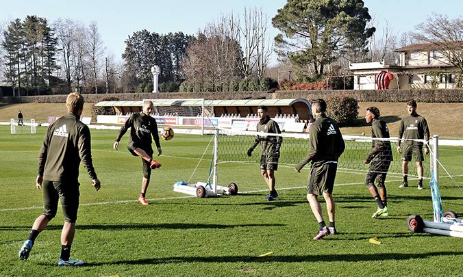 Nell’unica sessione di allenamento prevista per mercoledì a Milanello, iniziata alle 11:15 dopo il solito riscaldamento in palestra, il primo esercizio svolto sul campo centrale è stato un torello. Dopodiché la squadra di Vincenzo Montella ha continuato in gruppi separati: per i difensori lavoro specifico sul campo rialzato, per il resto dei giocatori lavoro sulla fase di impostazione sul centrale.