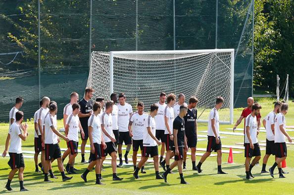 Sono stati presentati tutti i nuovi acquisti, eccetto André Silva: per loro piccola passerella al fianco dei tifosi, presenti anche capitano, Riccardo Montolivo, e vice-capitano Ignazio Abate. Intorno alle 18 la squadra è scena in campo per un’amichevole. Calciatori con la pettorina gialla, contro i blu (formazioni in basso). A trionfare sono stati i milanisti in casacca blu per 1-0: in gol Patrick Cutrone su assist di Fabio Borini. Qualche tiro dalla distanza di Calhanoglu e Bonaventura, per il resto poche emozioni. Al termine del match la squadra ha svolto alcuni esercizi fisici, con Franck Kessié che si è unito al gruppo dopo aver svolto un allenamento personalizzato.