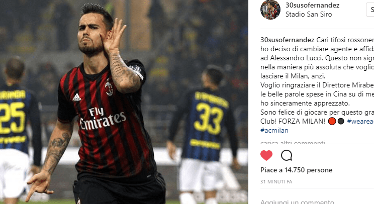 Nonostante questo, il calciatore non ha nessun dubbio. Vuole rimanere al Milan e far parte di questo nuovo entusiasmante progetto. Ne ha parlato ancora nelle dichiarazioni rilasciate poco fa all’Ansa e ha voluto ribadirlo ancora una volta su Instagram. Nel seguente post ha confermato anche il cambio di procura: “Cari tifosi rossoneri, ho deciso di cambiare agente e affidarmi ad Alessandro Lucci. Questo non significa nella maniera più assoluta che voglio lasciare il Milan, anzi. Voglio ringraziare il Direttore Mirabelli per le belle parole spese in Cina su di me, che ho sinceramente apprezzato. Sono felice di giocare per questo grande club! Forza Milan!“.