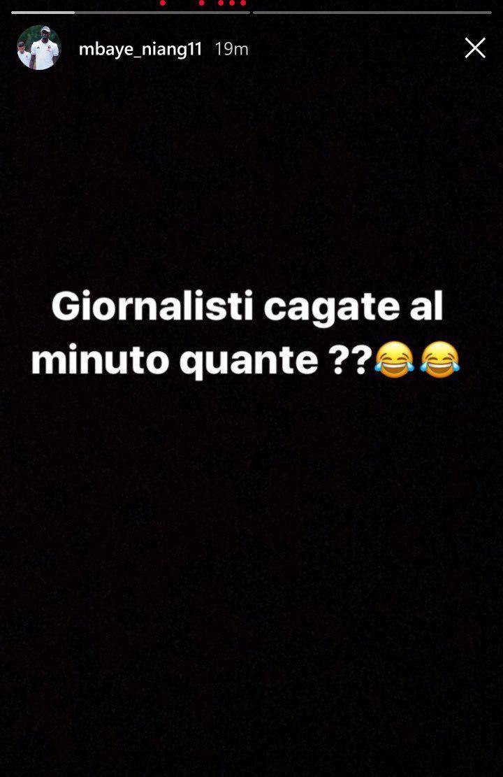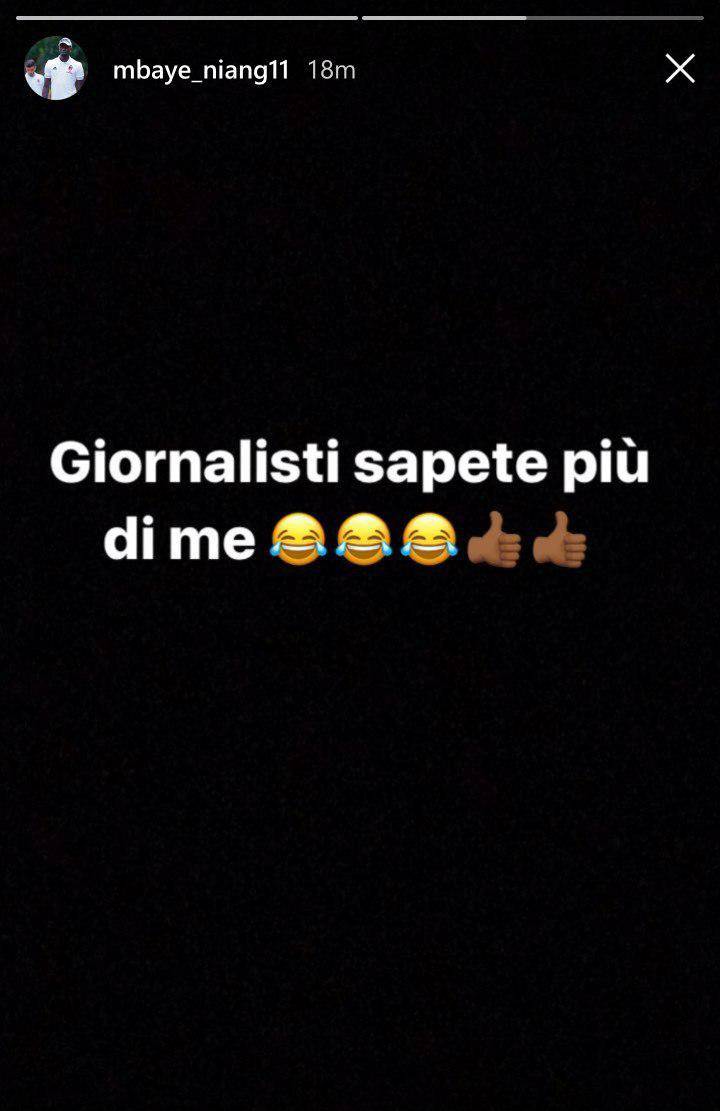 Intanto Niang tramite il proprio profilo ufficiale Instagram ha punzecchiato i giornalisti scrivendo “Giornalisti sapete più di me” e “Giornalisti cagate al minuto quante??“. Evidentemente alcune indiscrezioni emerse dal mondo dei media non sarebbero coincidenti con la sua versione dei fatti.
