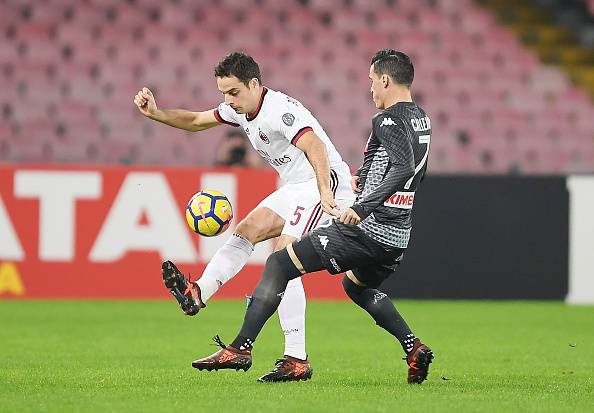 Nonostante i rossoneri stessero tenendo benissimo il campo, gli azzurri sono riusciti a perforare la difesa con un lancio in profondità: sbaglia la difesa, con Romagnoli che tiene in gioco Lorenzo Insigne, che batte con molta fortuna Gianluigi Donnarumma che aveva deviato il tiro. A decidere il gol è stato l’intervento del VAR, perché il guardalinee aveva segnalato fuorigioco. nel finale di tempo, con il Napoli andato vicino al raddoppio, l’uomo più pericoloso dei rossoneri (Suso) chiede il cambio: al suo posto André Silva.