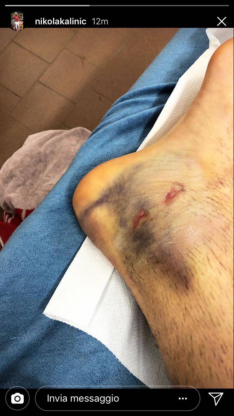 Kalinic nel frattempo ha dato testimonianza del proprio infortunio, a scanso di equivoci, pubblicando una foto piuttosto palese sul proprio profilo di Instagram Stories; il croato ha mostrato i segni dei tacchetti, i tagli e soprattutto l’ecchimosi che si è sviluppata sulla parte alta del piede destro del calciatore classe ’88. Un finale di anno solare tutt’altro che positivo per Kalinic, alla ricerca della fiducia del Milan e dei suoi tifosi ma bloccato anche da questo doloroso anche se non grave infortunio.