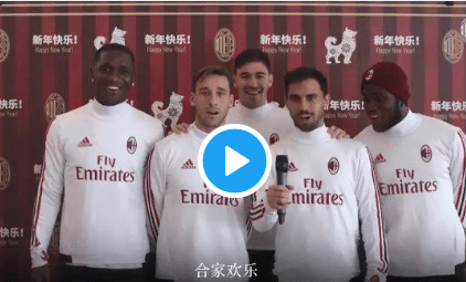 Nel video in questione tutti i calciatori della rosa del Milan, divisi in vari gruppi, hanno augurato i migliori auspici ai tifosi rossoneri di Cina e dintorni, tra l’altro utilizzando la lingua locale non senza qualche impaccio. Un augurio comunque ironico e sentito che farà sicuramente piacere alla proprietà cinese e ai tanti appassionati di Milan dalle parti della Grande Muraglia.