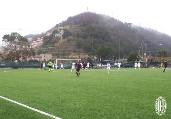 Primo tempo sfortunato per gli ospiti, che prima vanno vicini al vantaggio con Sinani il cui colpo di testa al 14′ va fuori di poco, poi beccano il gol al 22′. Pochi minuti dopo, precisamente al 26′ arriva il raddoppio genoano con Karic. La sfortuna torna a farsi beffe dei giovani milanisti, che un minuto dopo il raddoppio avversario, colpiscono il palo con Tiago Dias. Nel finale di frazione rischio game over per i rossoneri, che si salvano con i riflessi del proprio portiere Christian Cavaliere. Secondo tempo da incubo: idee di rimonta che gli avversari spengono subito, con il terzo gol di Zanimacchia al 62′. Salcedo firma il 4-0 due minuti dopo. Gol della bandiera di Tsadjout al minuto 74. Partita che prosegue senza emozioni fino al fischio finale: brutta batosta per i ragazzi di mister Lupi, sconfitti 4-1.