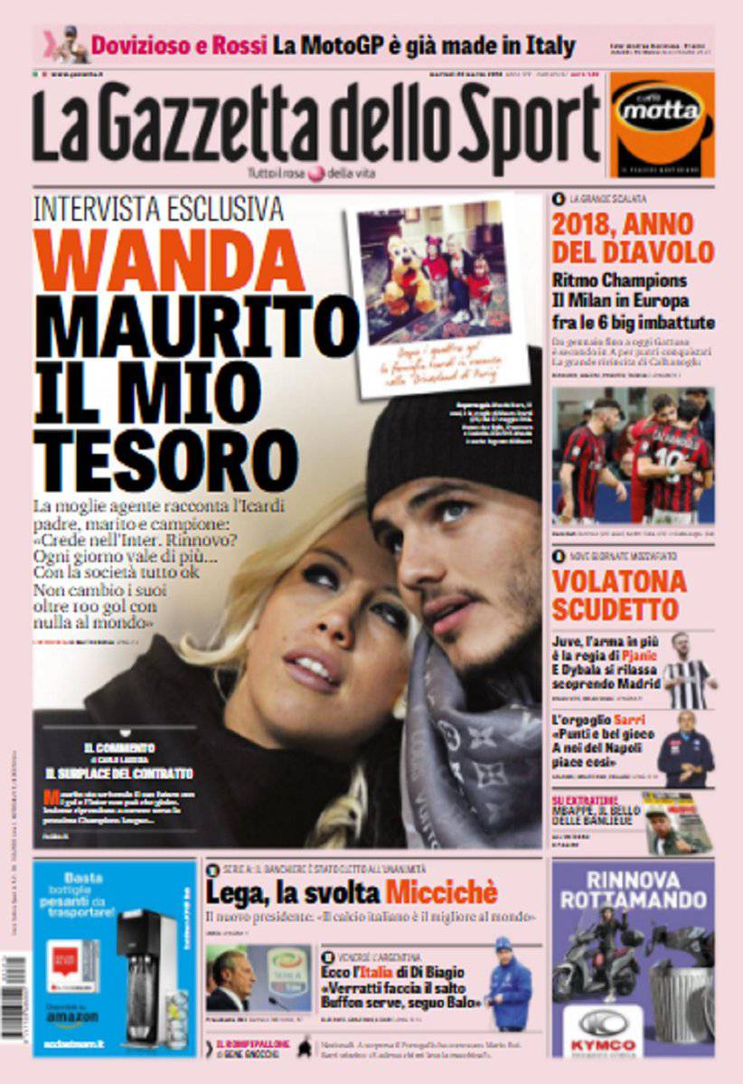 Gazzetta dello Sport, CorSport, Tuttosport: prime pagine del 20 marzo 2018 20/03/2018 - 08:15 di Keivan Karimi