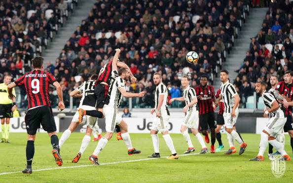 Vantaggio iniziale di Paulo Dybala, che lasciato completamente libero tra le linee, batte Gianluigi Donnarumma con un sinistro da fuori. Il Milan non si scompone molto e continua a fare il suo gioco. Prima il clamoroso gol divorato da André Silva di testa, poi al 28′ arriva il gol del pareggio. Tra tutti gli 11 rossoneri in campo, segna proprio lui: Leonardo Bonucci, che di testa anticipa magistralmente Barzagli e Chiellini. Nel finale di tempo nessuna occasione degna di nota.