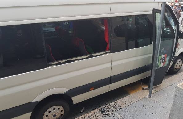 Pullmino dello staff del #Milan colpito da una sprangata allo Stadium: vetro in frantumi ma fortunatamente nessun ferito. (Dell’inviato @AntoVitiello) pic.twitter.com/Td4Iw9VqEp