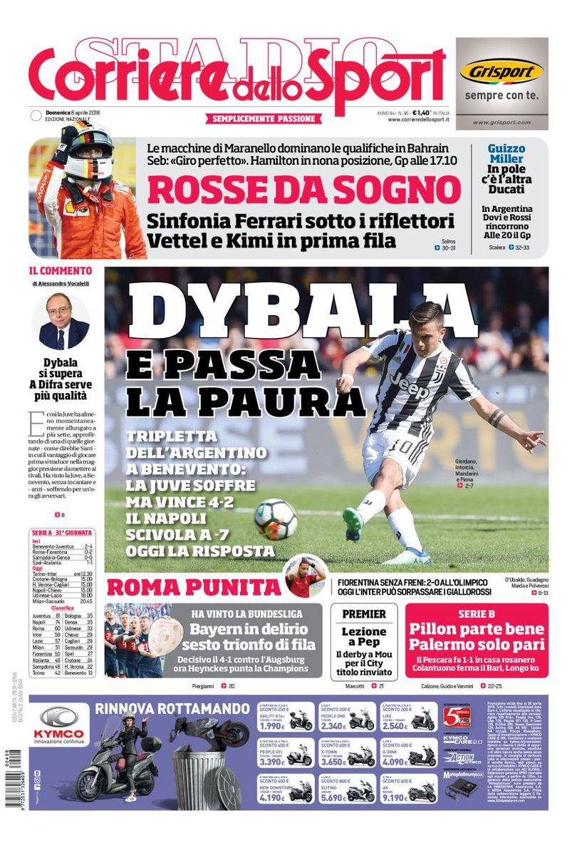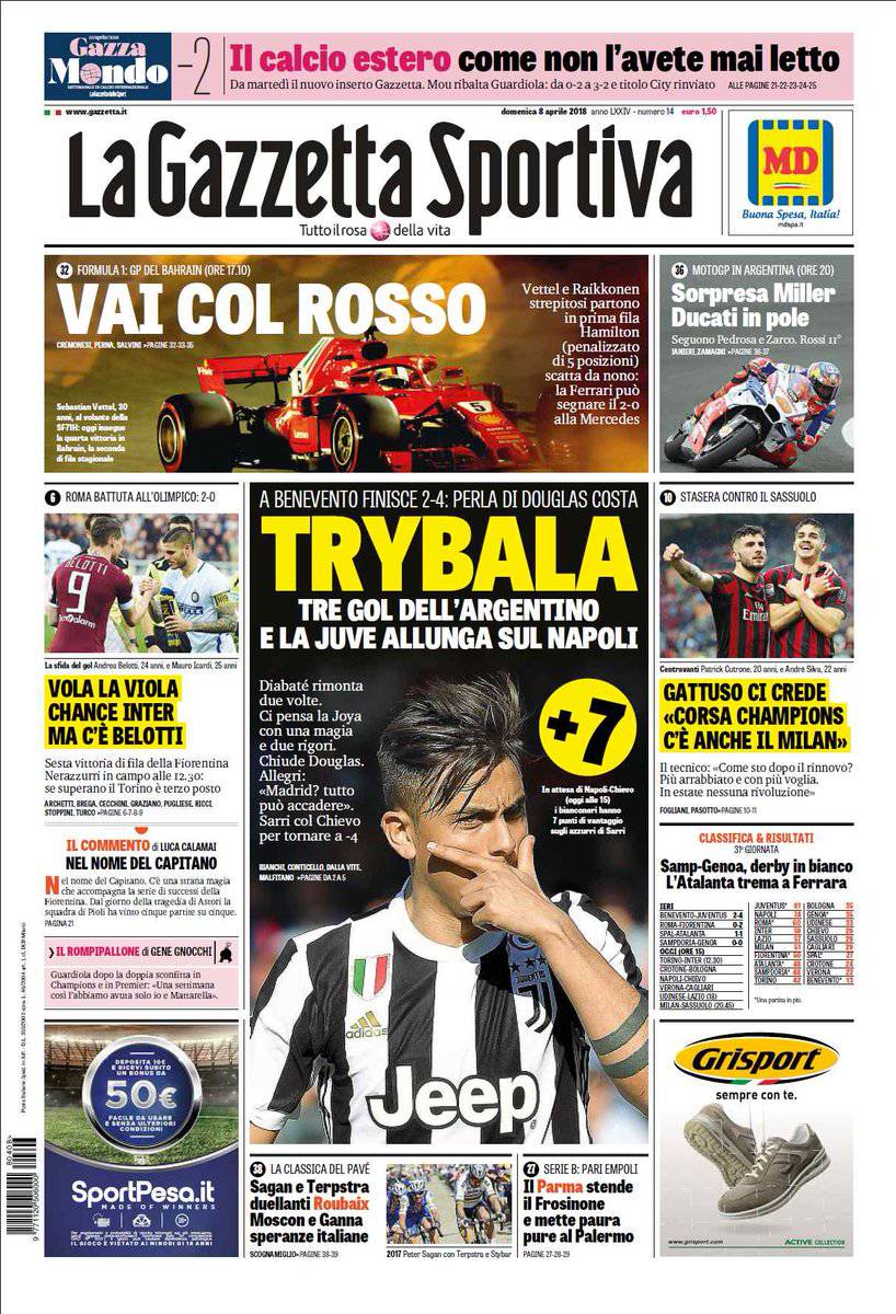 Gazzetta dello Sport, CorSport, Tuttosport: prime pagine del 8 aprile 2018 08/04/2018 - 08:18 di Keivan Karimi