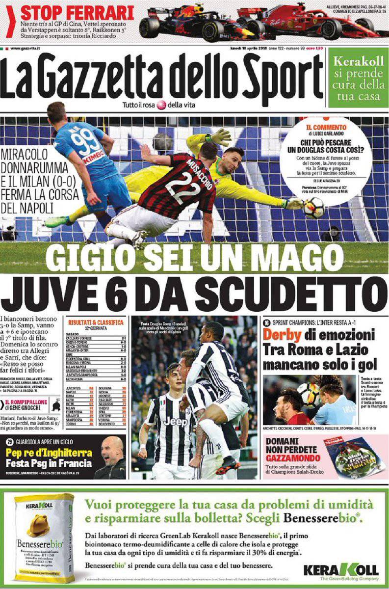 Gazzetta dello Sport, CorSport e Tuttosport: prime pagine del 16 aprile 2018 16/04/2018 - 08:14 di Keivan Karimi