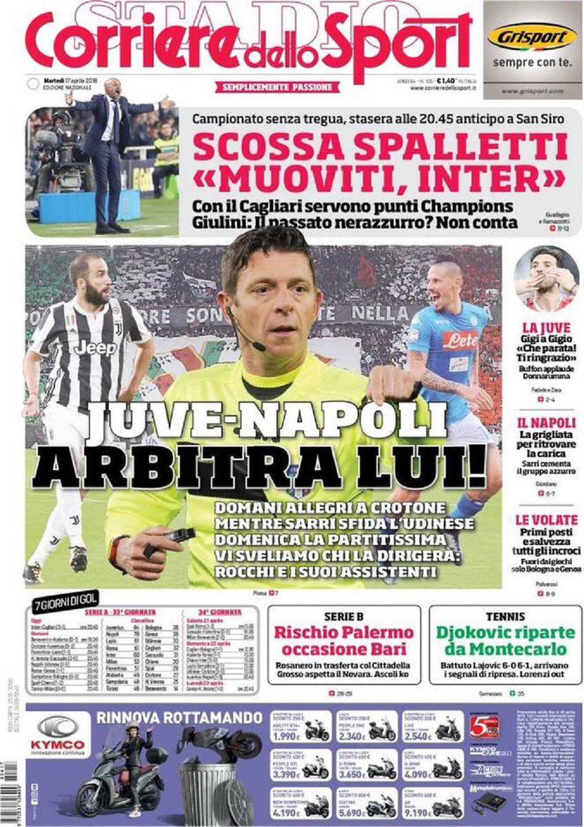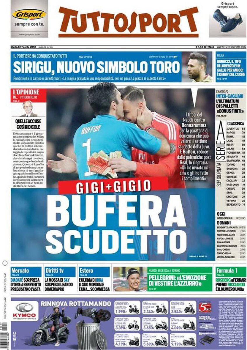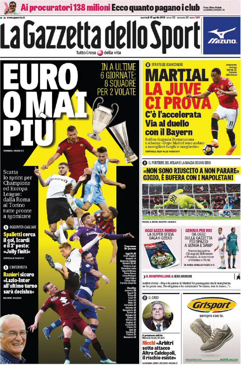 Gazzetta dello Sport, CorSport, Tuttosport: prime pagine del 17 aprile 2018 17/04/2018 - 08:19 di Keivan Karimi