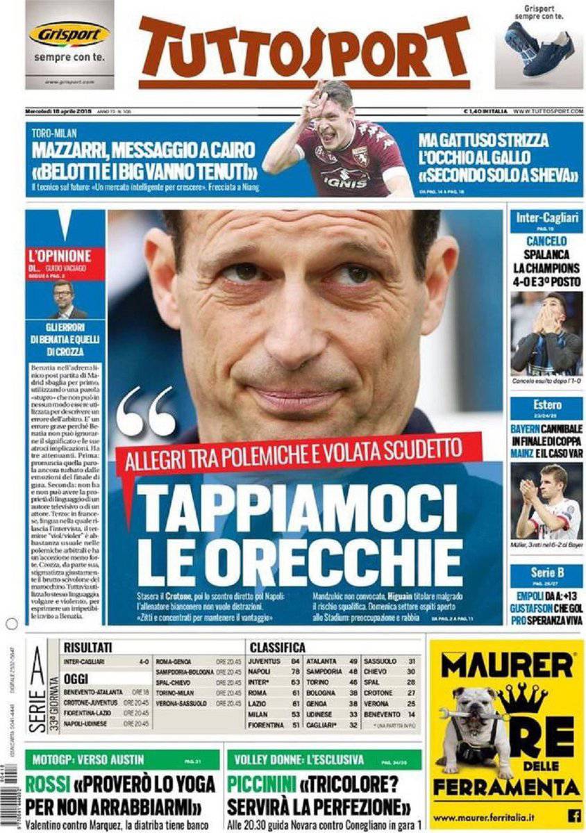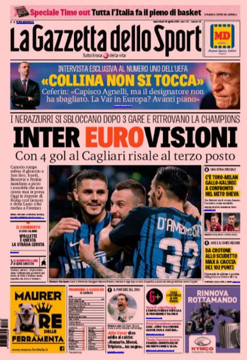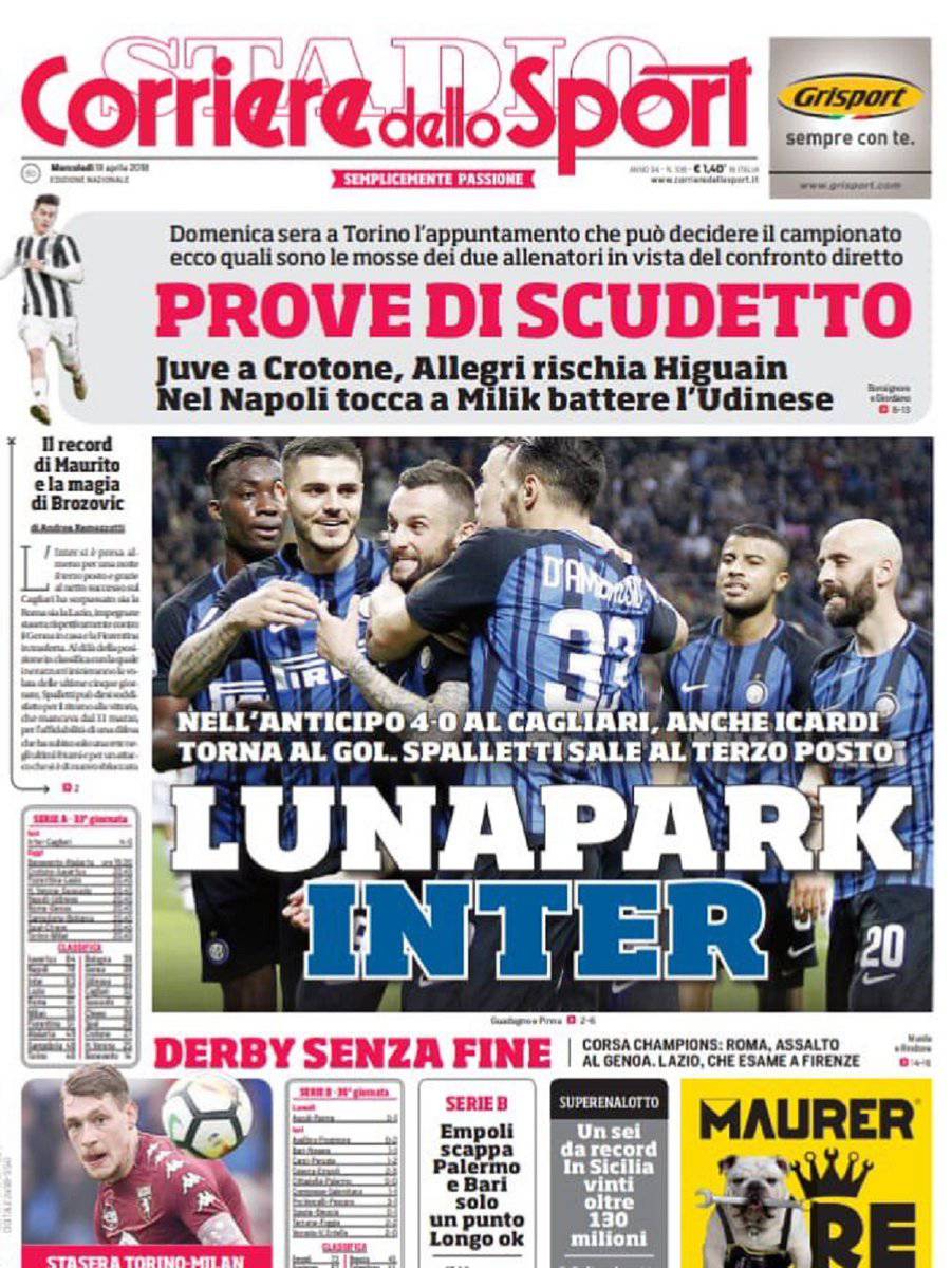 Gazzetta dello Sport, CorSport, Tuttosport: prime pagine del 18 aprile 2018 18/04/2018 - 08:20 di Keivan Karimi