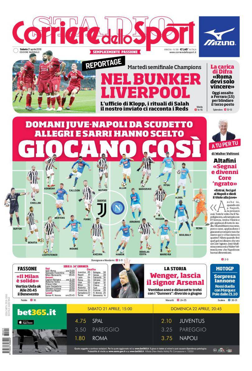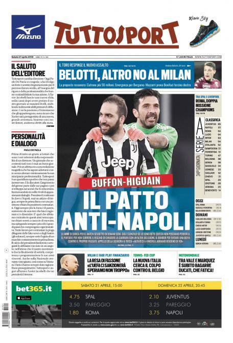 Gazzetta dello Sport, CorSport, Tuttosport: prime pagine del 21 aprile 2018 21/04/2018 - 07:09 di Keivan Karimi