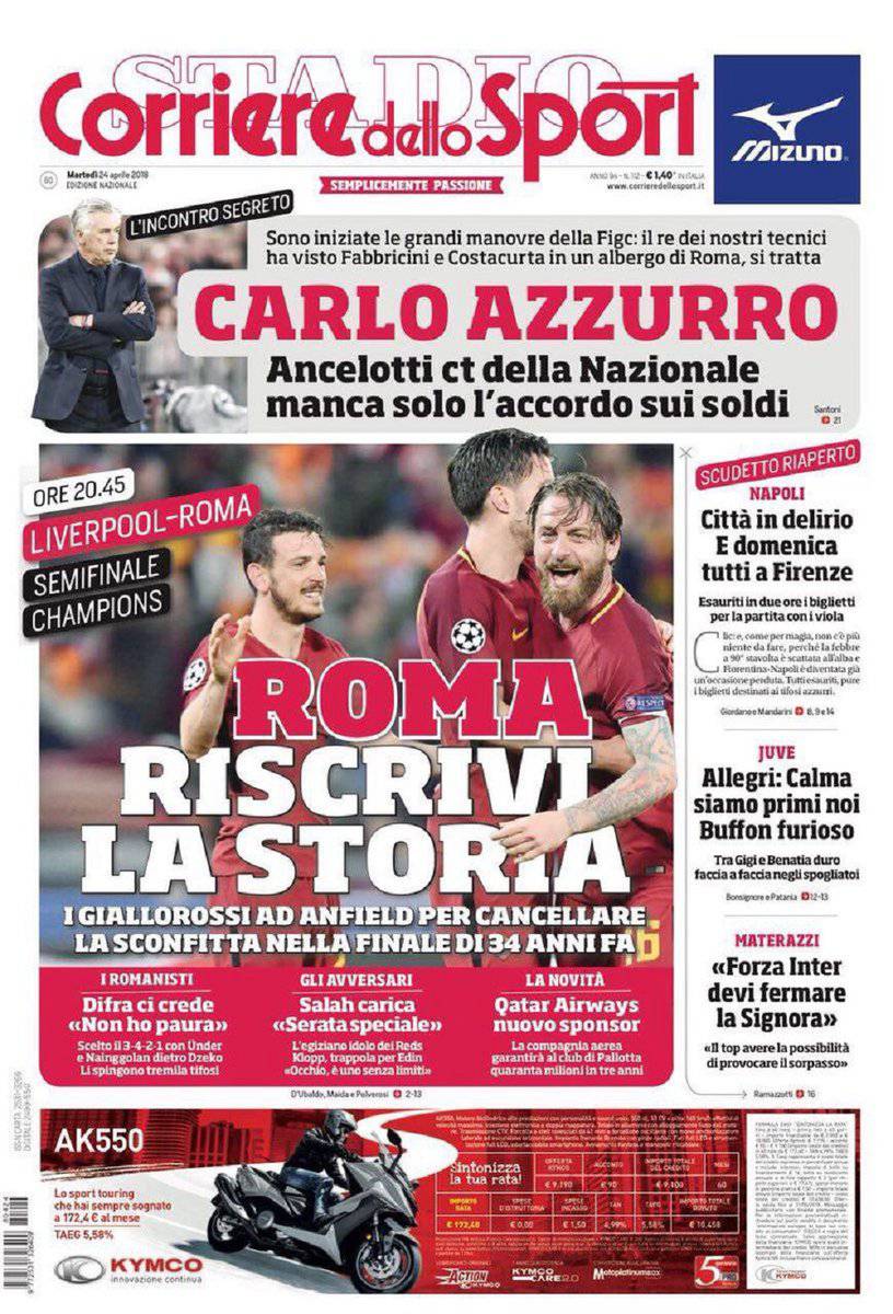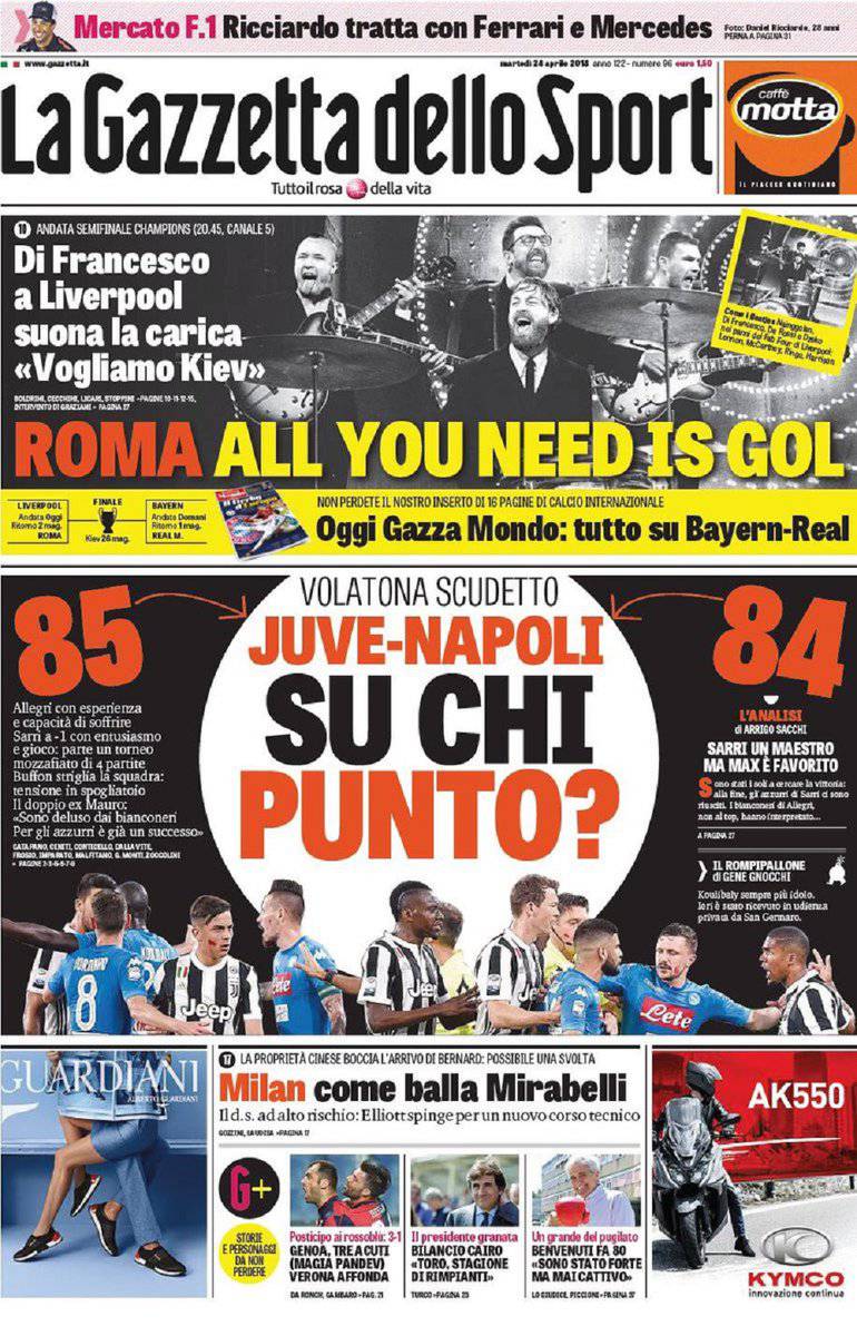 Gazzetta dello Sport, CorSport, Tuttosport: prime pagine del 24 aprile 2018 24/04/2018 - 08:06 di Keivan Karimi