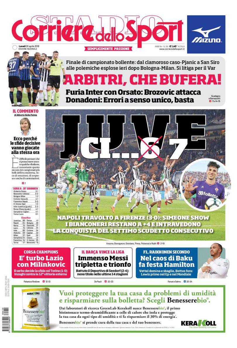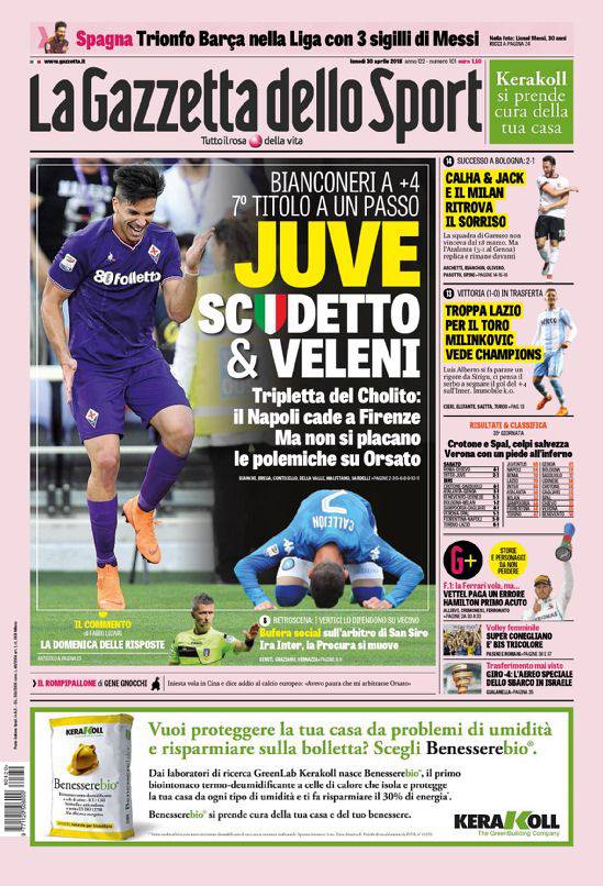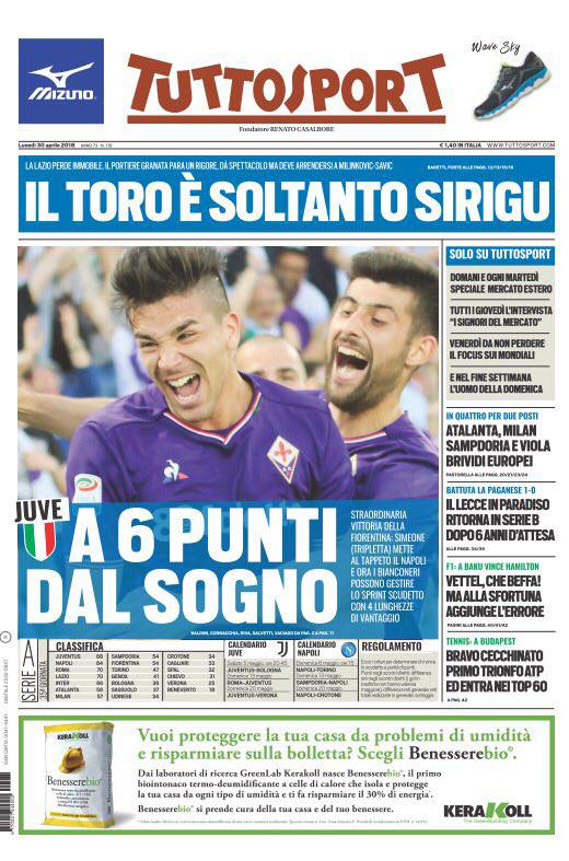 Gazzetta dello Sport, Corsport, Tuttosport: prime pagine del 30 aprile 2018 30/04/2018 - 08:02 di Keivan Karimi