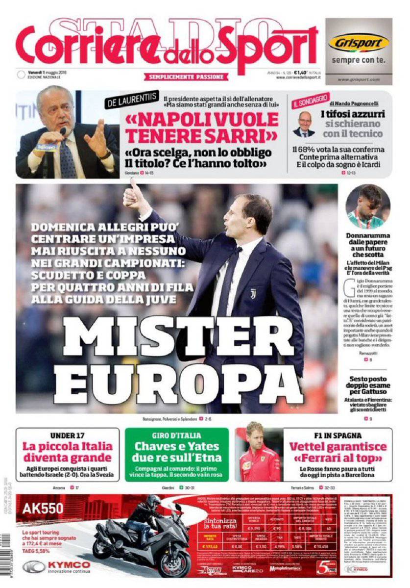Gazzetta dello Sport, CorSport, Tuttosport: prime pagine del 11 maggio 2018 11/05/2018 - 08:28 di Keivan Karimi