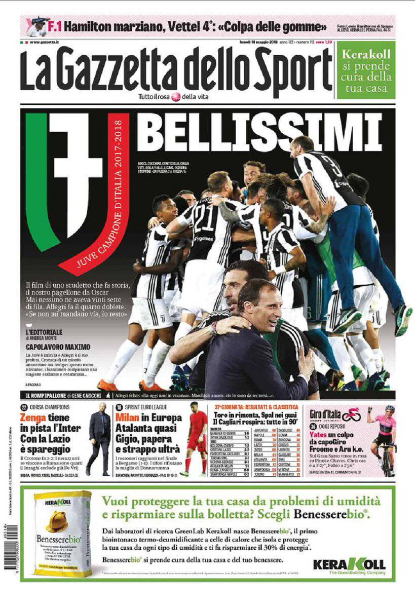 Gazzetta dello Sport, CorSport, Tuttosport: prime pagine del 14 maggio 2018 14/05/2018 - 08:08 di Keivan Karimi