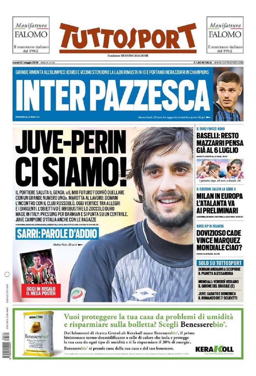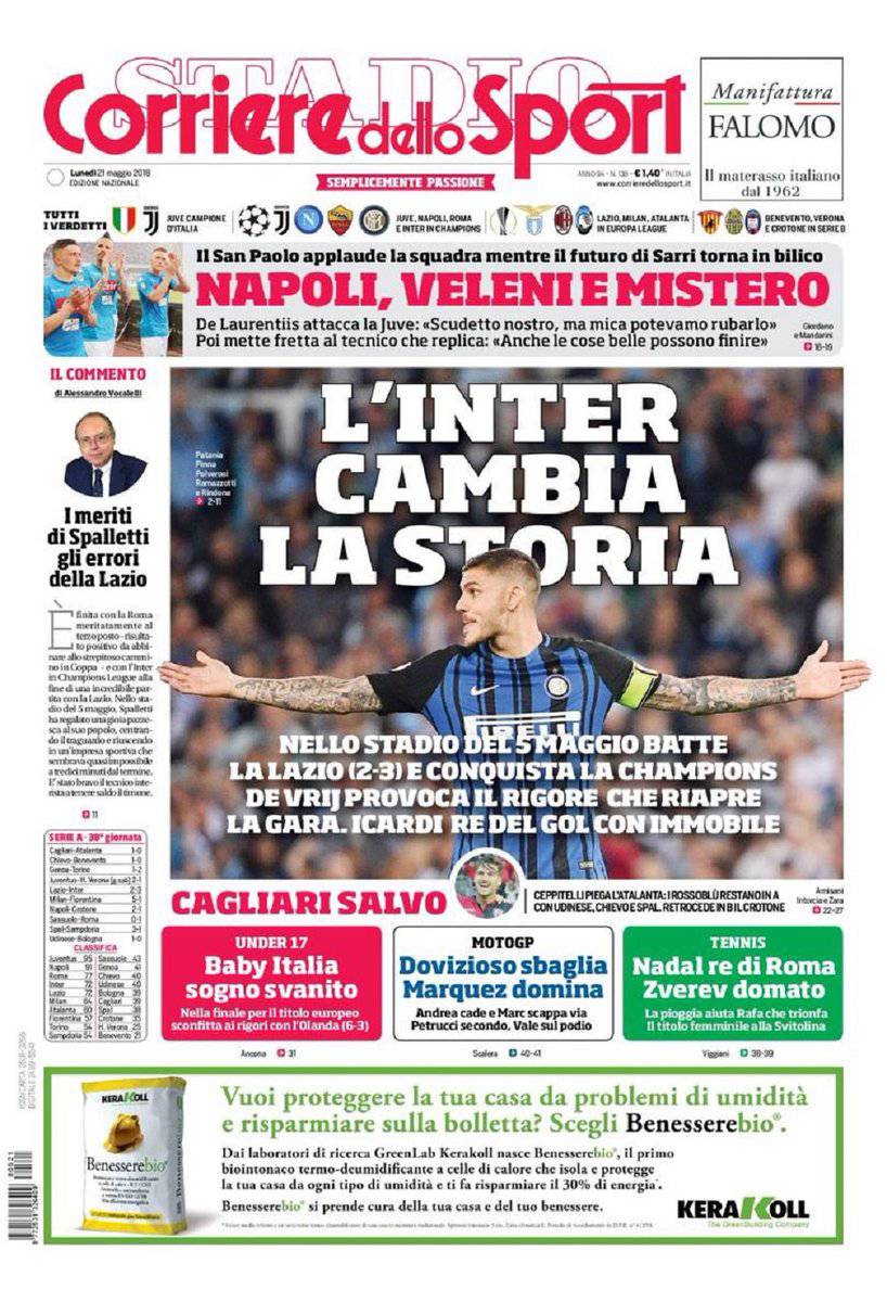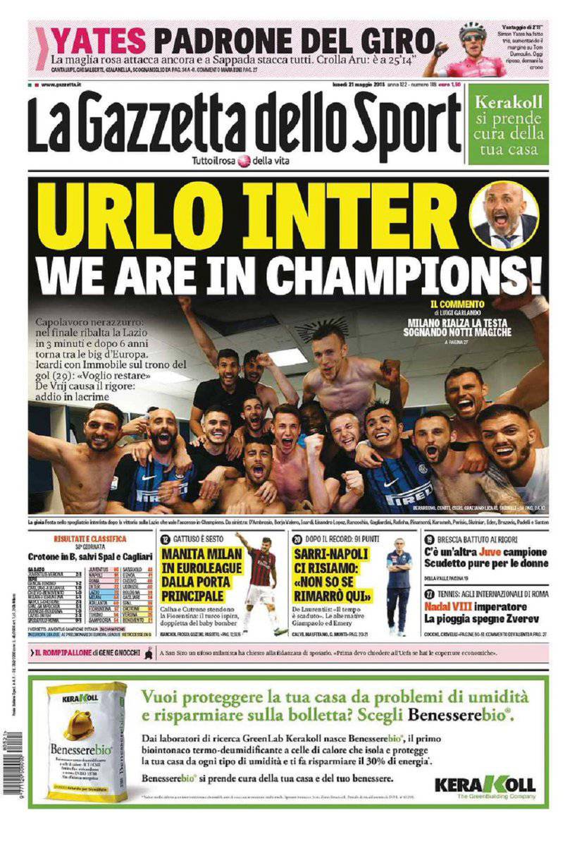 Gazzetta dello Sport, CorSport, Tuttosport: prime pagine del 21 maggio 2018 21/05/2018 - 08:10 di Keivan Karimi