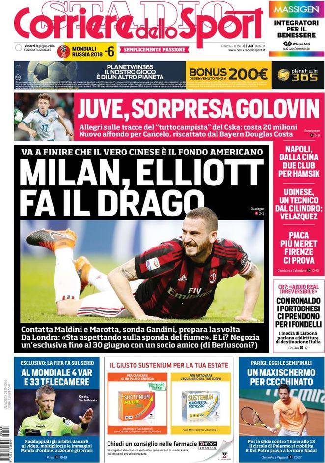 Home » rassegna stampa milan » Gazzetta dello Sport, Corsport, Tuttosport: prime pagine del 8 giugno 2018