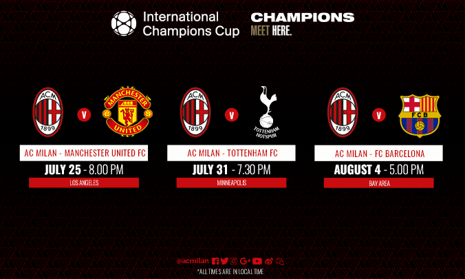 Scatterà l’International Champions Cup 2018, che nell’edizione estiva di quest’anno vedrà la squadra di Gennaro Gattuso nel mini girone amichevole contro Manchester United, Tottenham e Barcellona. Un tour estivo in giro per gli Stati Uniti che porterà nelle casse delle società partecipanti 3-4 milioni di euro ciascuno e consentirà ai tecnici di provare soluzioni tattiche rilevanti in vista della nuova stagione, all’interno di sfide che di amichevole hanno ben poco.