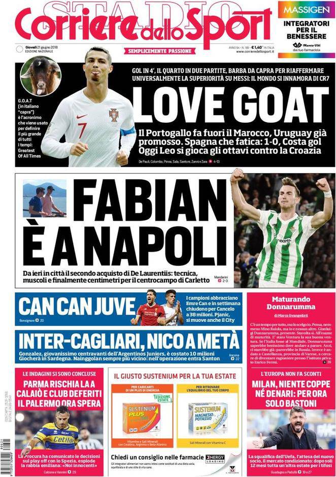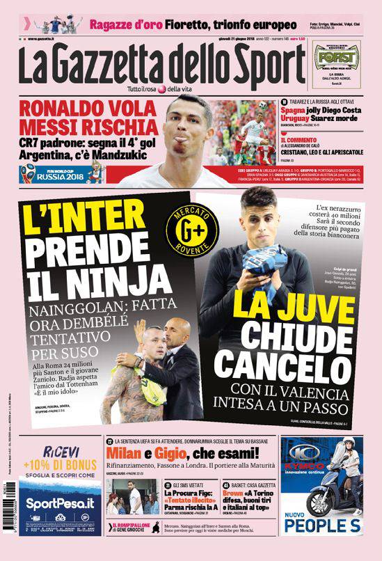 Gazzetta, Corriere dello Sport, Tuttosport: prime pagine 21 giugno 2018 03/07/2018 - 06:5821/06/2018 - 07:31 di Matteo B.
