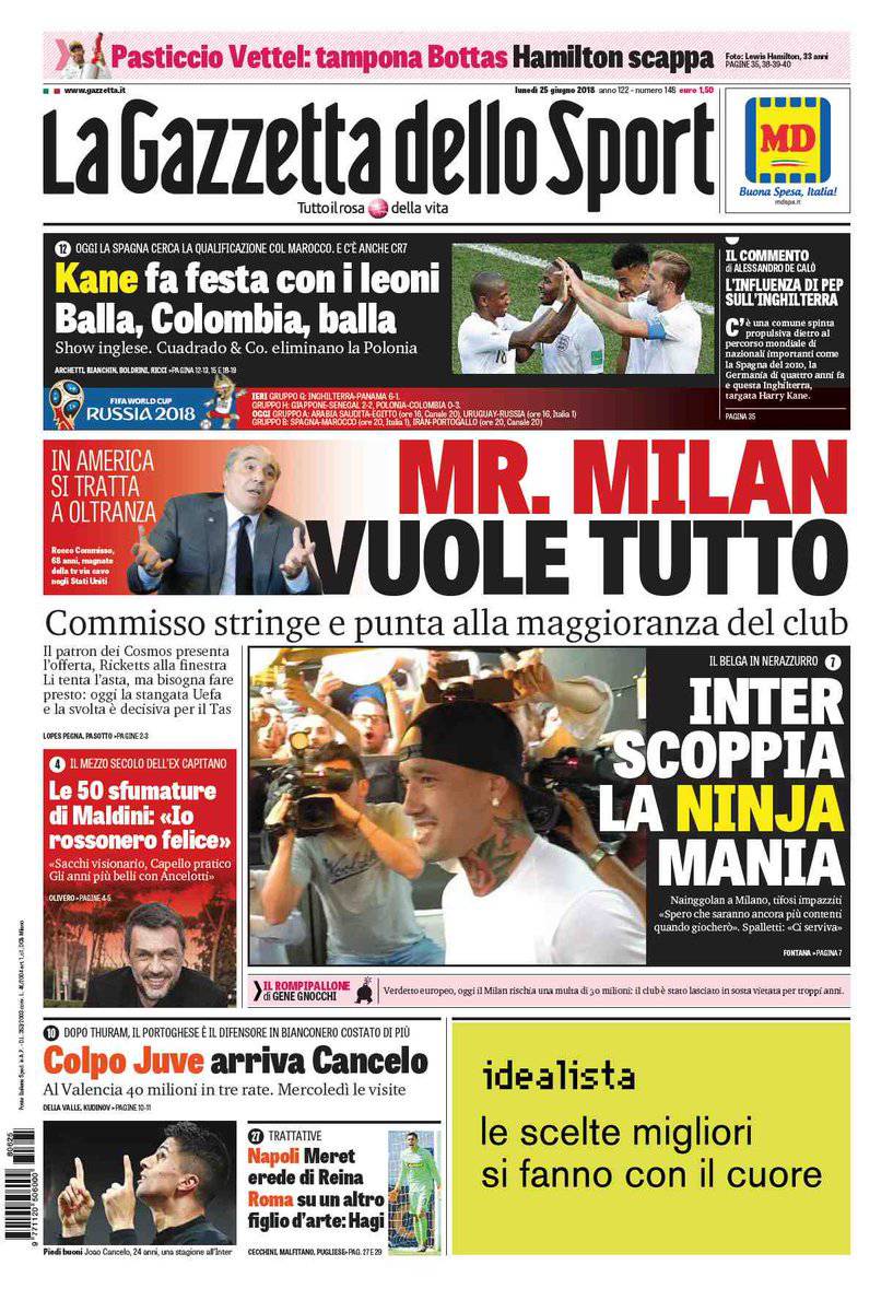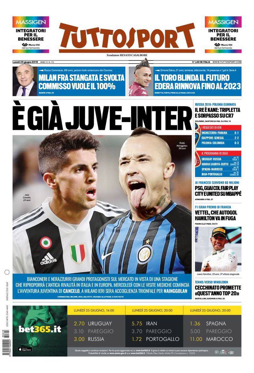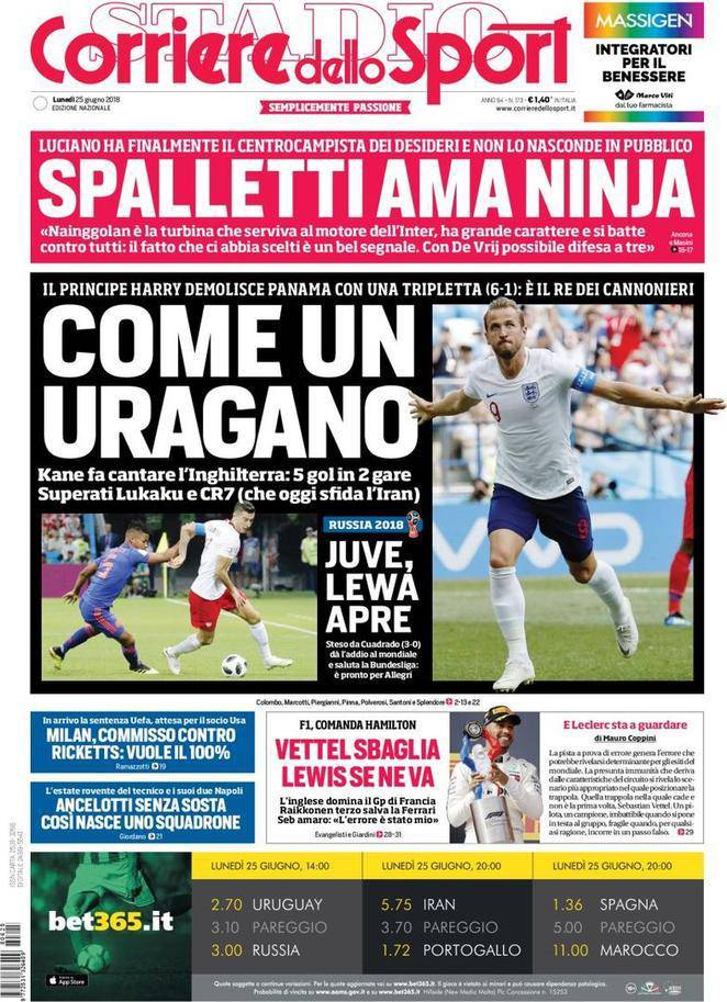Gazzetta, Corriere dello Sport, Tuttosport: prime pagine 25 giugno 2018 26/06/2018 - 12:2925/06/2018 - 06:54 di Matteo B.