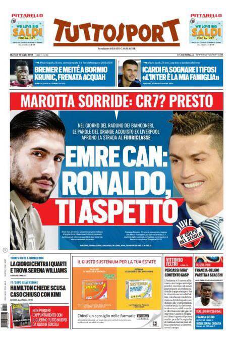 Gazzetta, Corriere dello Sport, Tuttosport: prime pagine 10 luglio 2018 10/07/2018 - 07:58 di Matteo B.