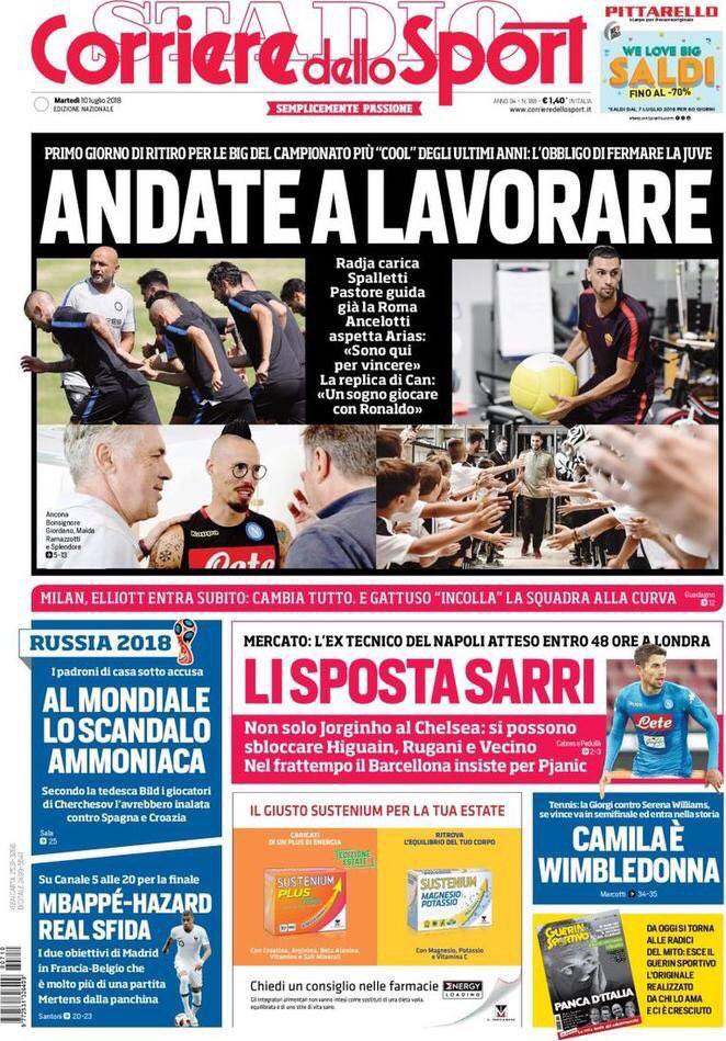 Gazzetta%2C+Corriere+dello+Sport%2C+Tuttosport%3A+prime+pagine+10+luglio+2018