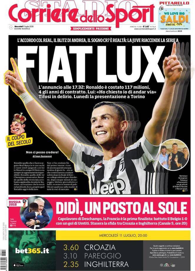 Gazzetta, Corriere dello Sport, Tuttosport: prime pagine 11 luglio 2018 11/07/2018 - 07:30 di Matteo B.